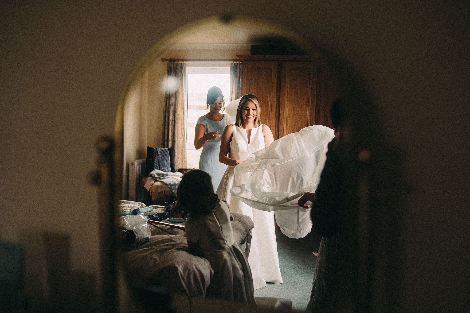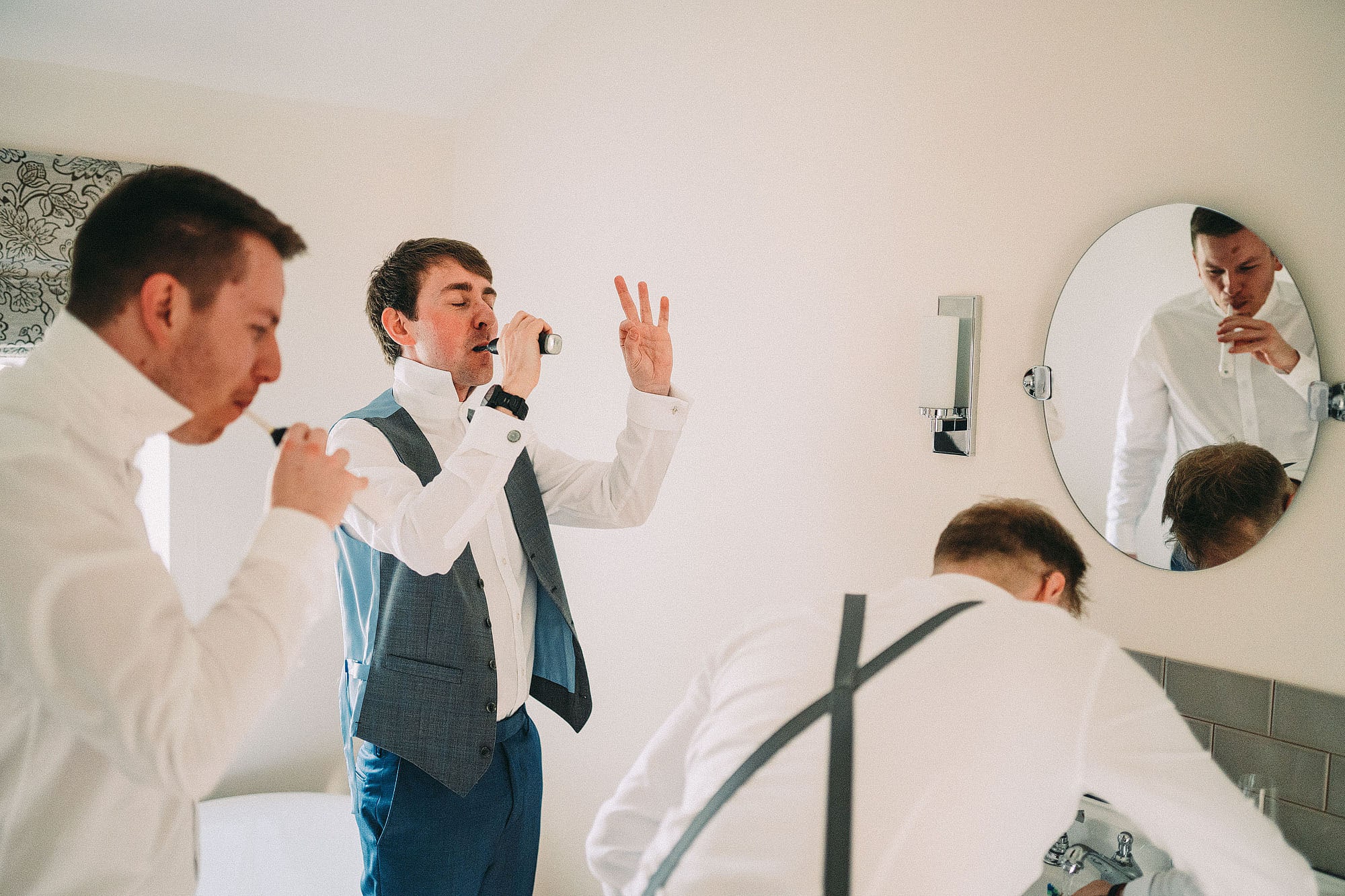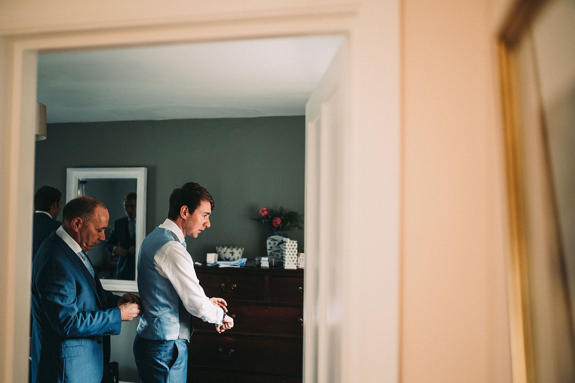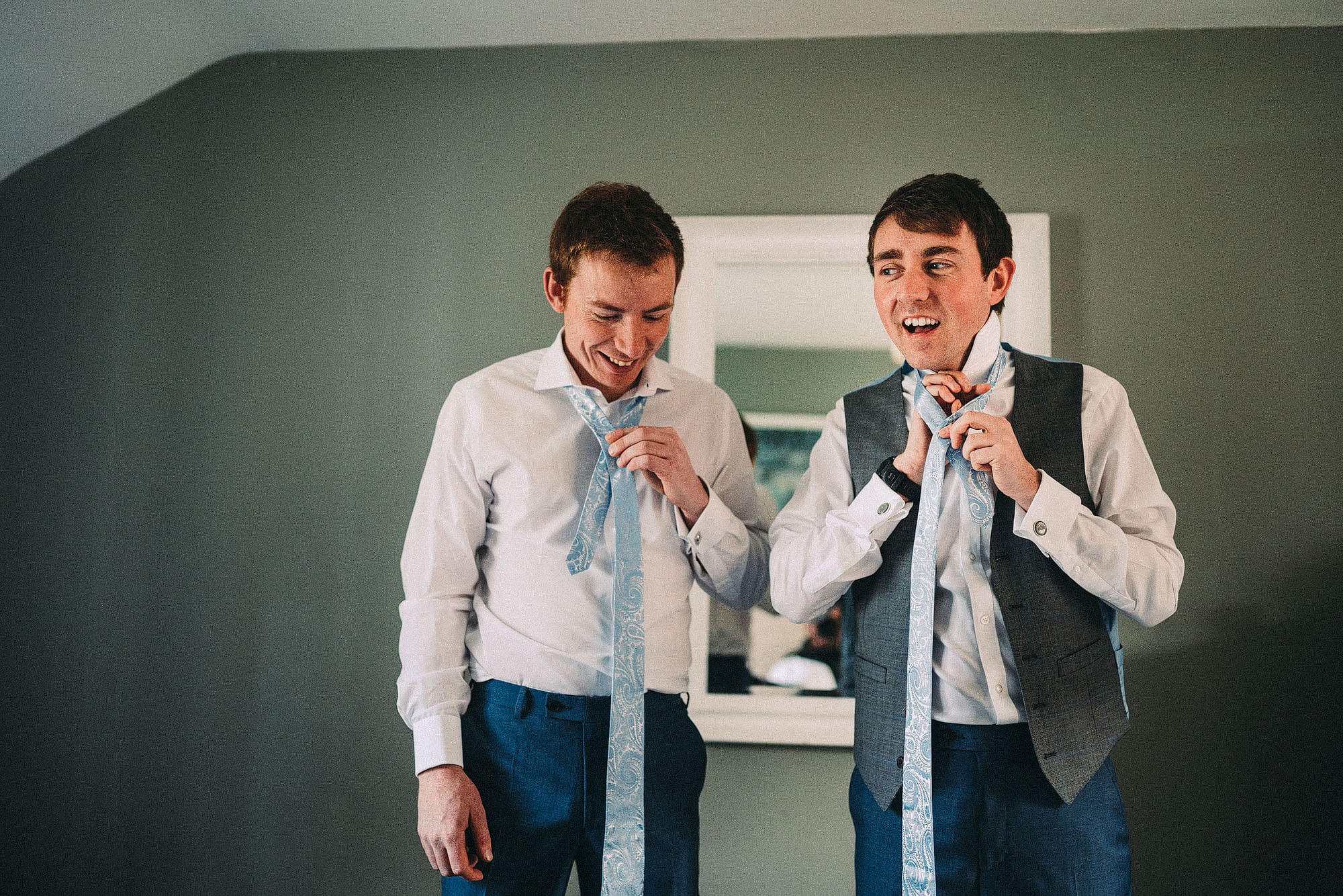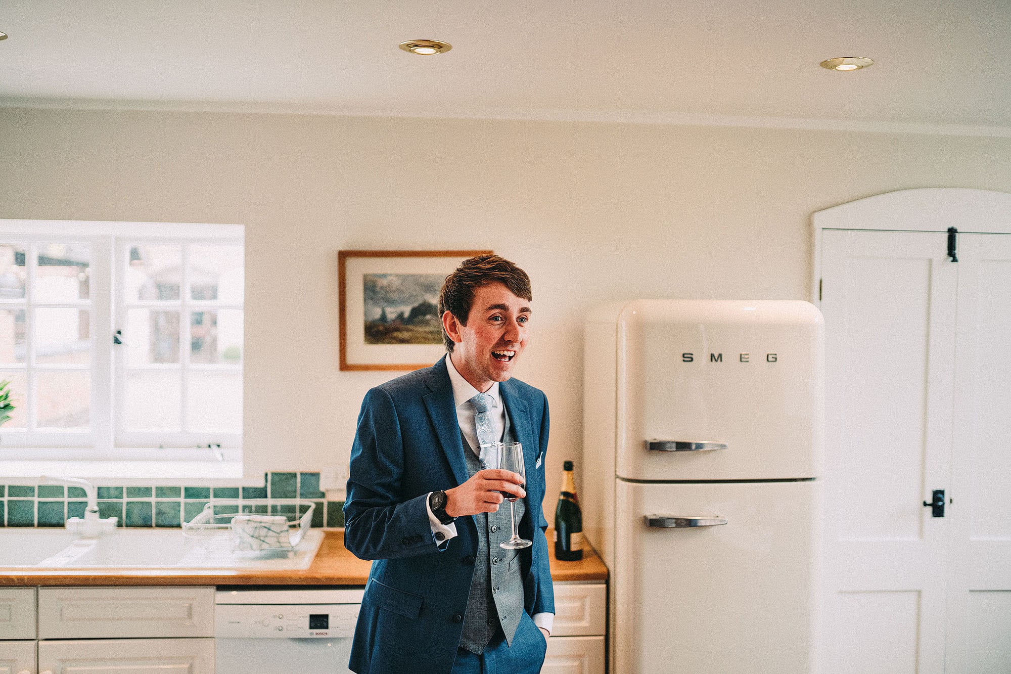 The wedding itself was at the lovely St Oswald’s Church in Malpas before heading off the very beautiful Iscoyd Park. We absolutely love weddings at Iscoyd. Not only is it stunning inside (with massive windows lettings loads of delicious light in) but the grounds are brilliant for a few portraits without having to go far. Always a win! The groomsmen all got ready in a lovely little cottage on the grounds of Iscoyd. It had a Smeg fridge, that’s how fancy it was.