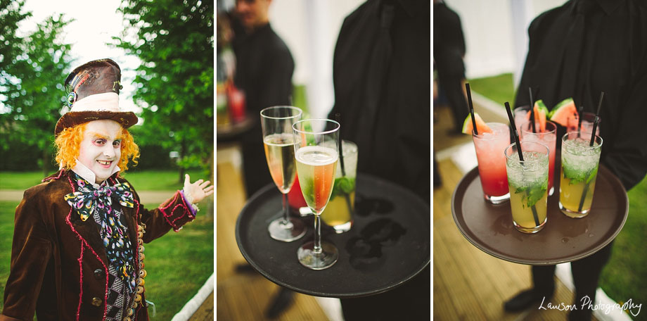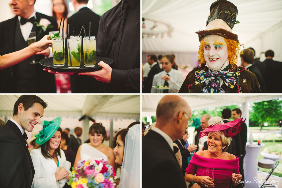George and Rick are brilliant. A beautiful ceremony in Siddington Church followed by a Mad Hatters themed tea party at George’s dad’s beautiful house, complete with a Mad Hatter MC, a wonky cake and an abundance of cocktails.
