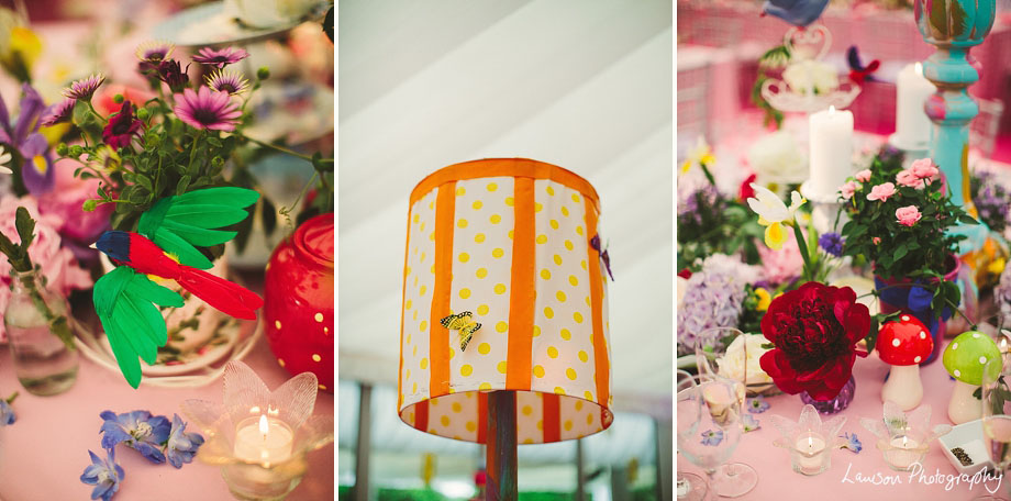 Fantastic photos and what a photogenic wedding. The tea party theme reception is so cool.