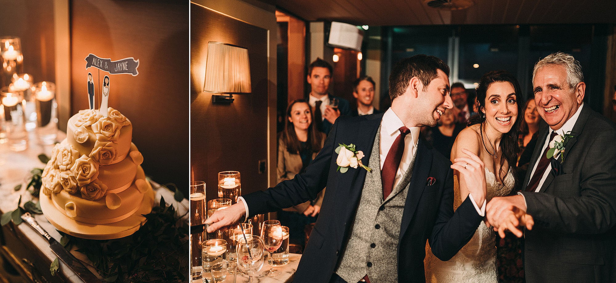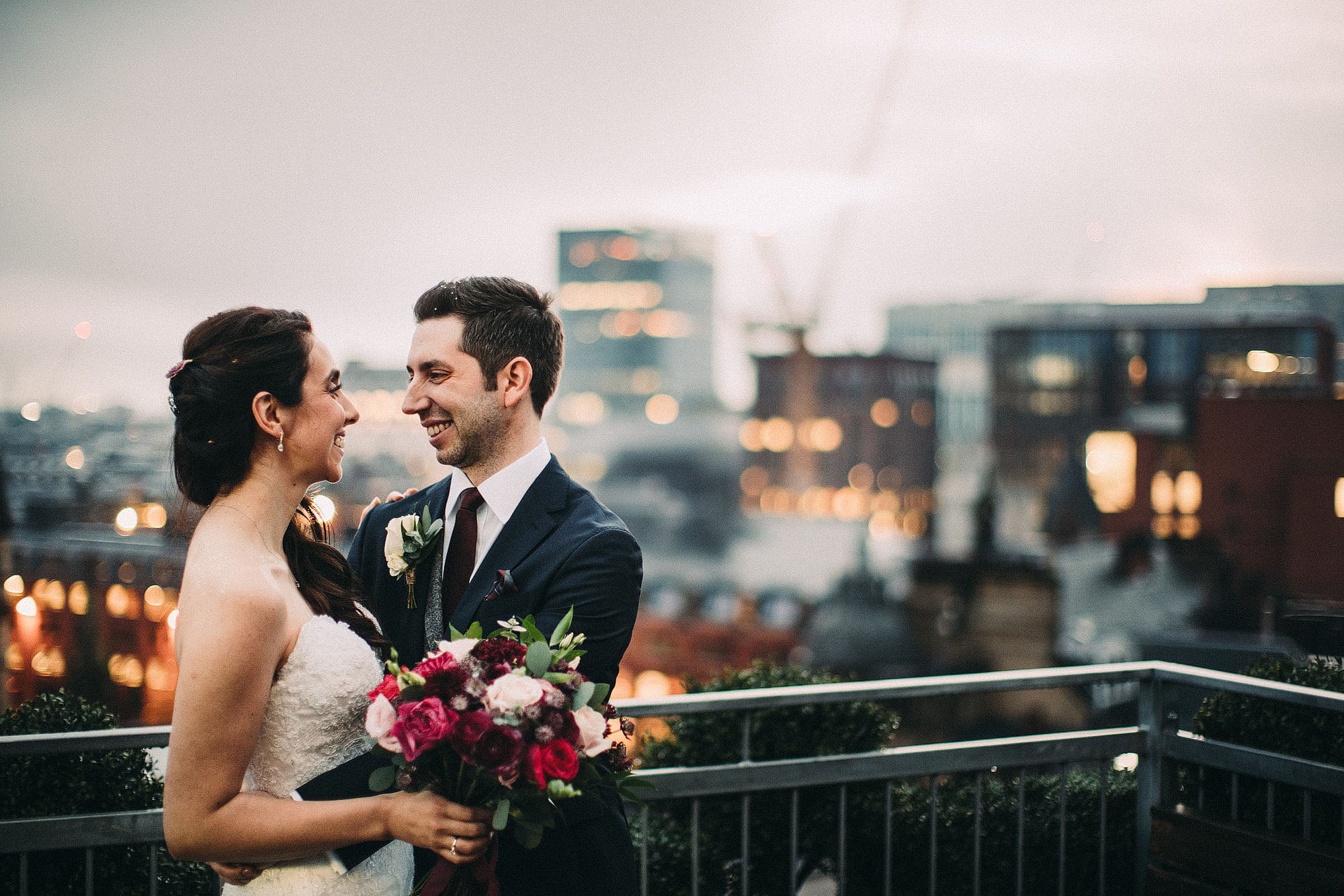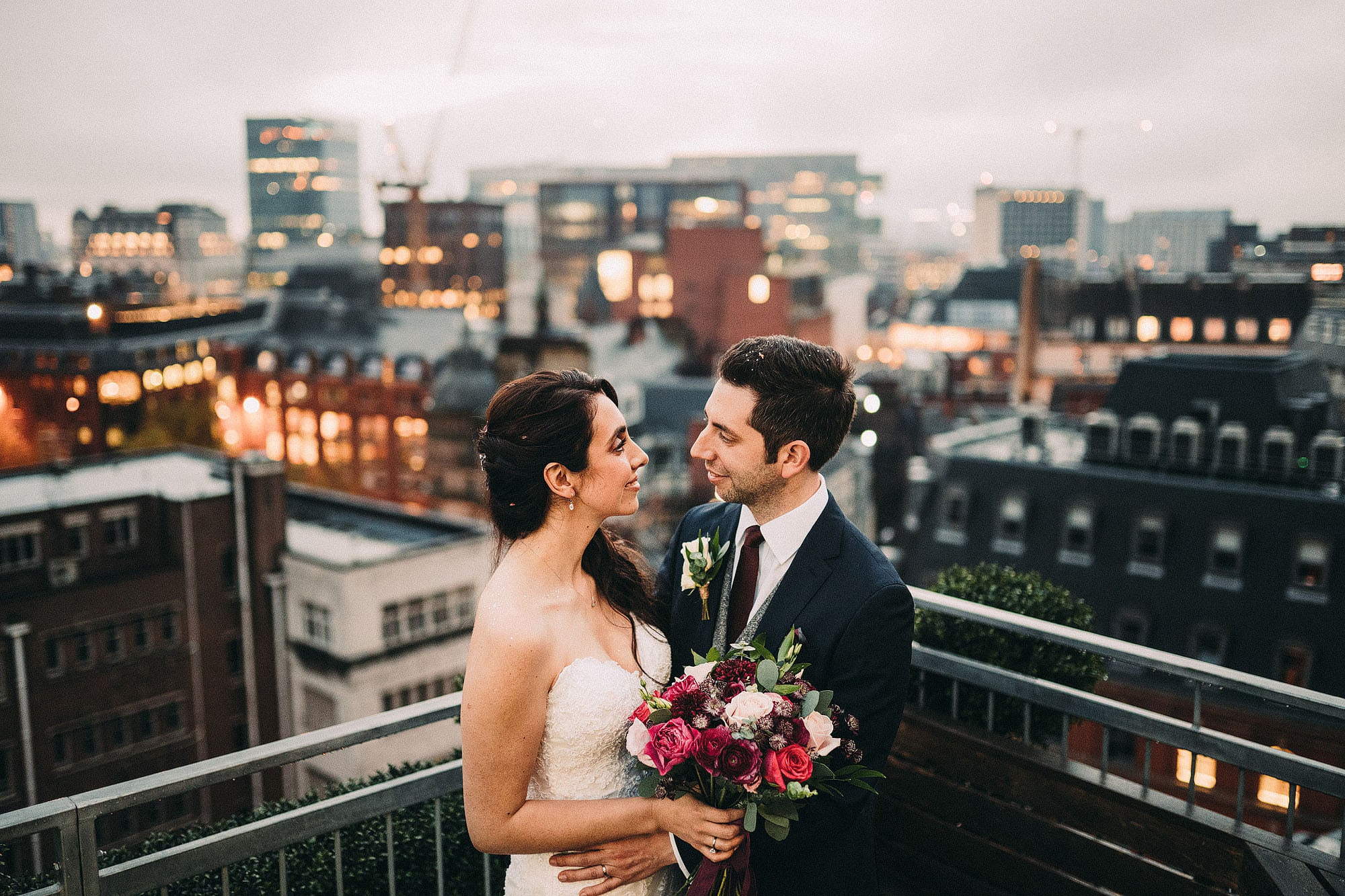 After spending the morning with Jayne getting ready (complete with plenty of cute parent/bridesmaid moments!) it was on to the candle lit ceremony. We then ran straight up to the roof top with some amazing panoramic views over Manchester for portraits while there was still some light in the sky.